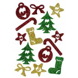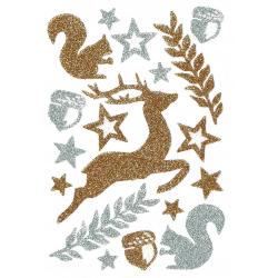 Samolepky s vánočím motivem, metalické, s brokátem.
