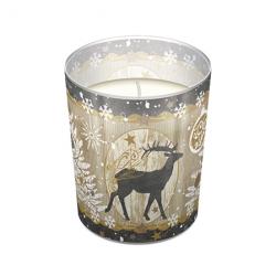 Vonná svíčka Royal Deer ve skle s vánočním motivem.