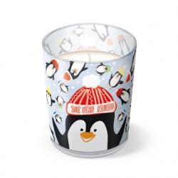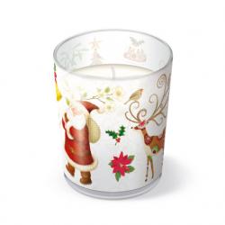 Vonná svíčka Winter Friends ve skle s vánočním motivem.