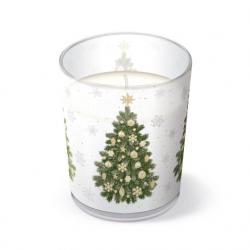 Vonná svíčka Frosty Tree ve skle s vánočním motivem.
