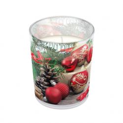 Vonná svíčka Xmas Wreath ve skle s vánočním motivem.