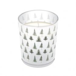 Vonná svíčka Paw Conifer Forest ve skle s vánočním motivem.