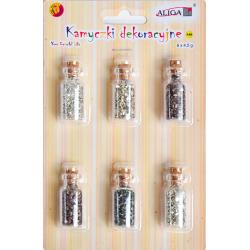 Dekorační kamínky na blistru v ampulkách. Blistr obsahuje 6 barev.