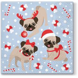 Papírové vánoční ubrousky Paw z kolekce Xmas Puppies, 33 x 33 cm, třívrstvé.
