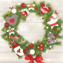 Vánoční papírový ubrousek Pol-Mak Daisy - Xmas Wreath witg Felt Decorations.