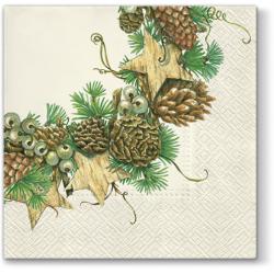 Papírové vánoční ubrousky Paw z kolekce Cones Wreath, 33 x 33 cm, třívrstvé.