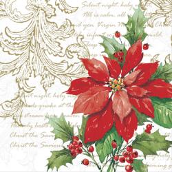 Vánoční papírové ubrousky Paw: Stylish Poinsettia - bílé, 20 ubrousků, třívrstvé, 33x33cm....
