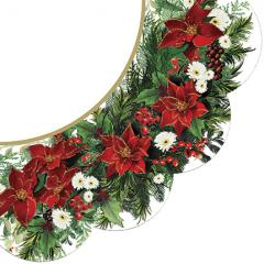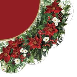 Papírové vánoční ubrousky Paw z kolekce Poinsettia Wreath - červené, 12 ubrousků, třívrstvé, ø32cm(r...