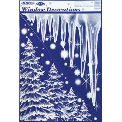 Vánoční dekorační samolepka s brokátem na sklo, stěny, dveře atp.