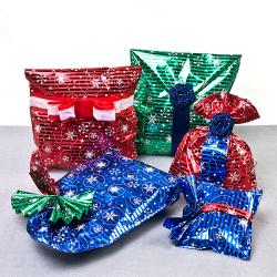 Mix vánočních sáčků Stretch v barvách: bianco, blu, nero, rosso, verde.