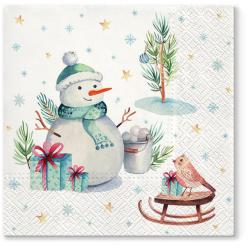 Vánoční papírové ubrousky Paw TeTe: Lovely Snowman, 20 ubrousků, třívrstvé, 33x33cm.