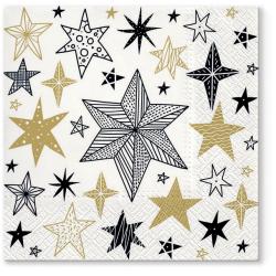 Vánoční papírové ubrousky Paw TeTe: Geometric Stars, 20 ubrousků, třívrstvé, 33x33cm.