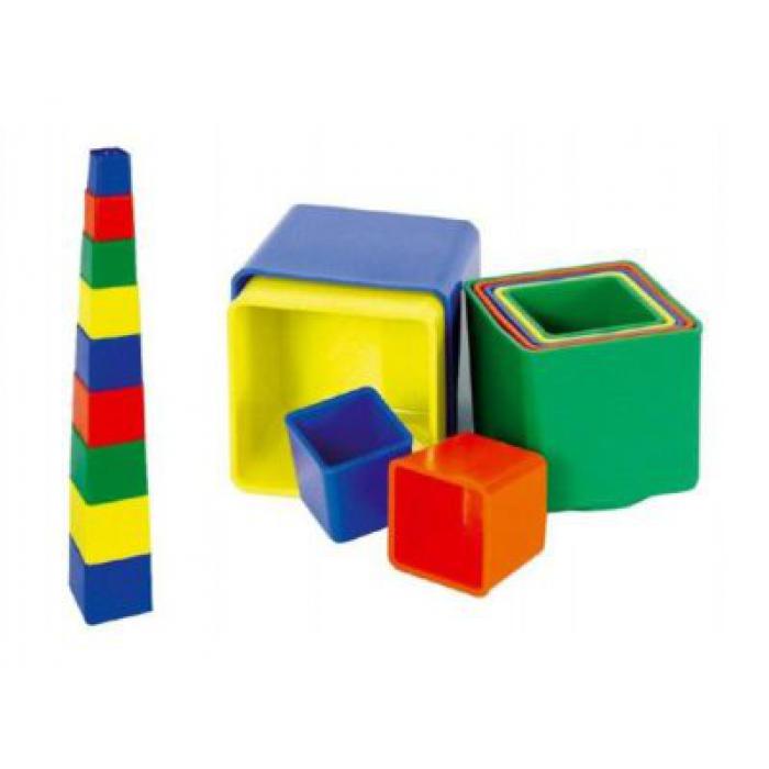 Skládání tvarů rozdílných velikostí na sebe nebo do sebe.