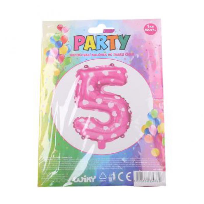 Nafukovací balónek ve tvaru čísla 5, balení obsahuje 1 ks, barva: růžová.