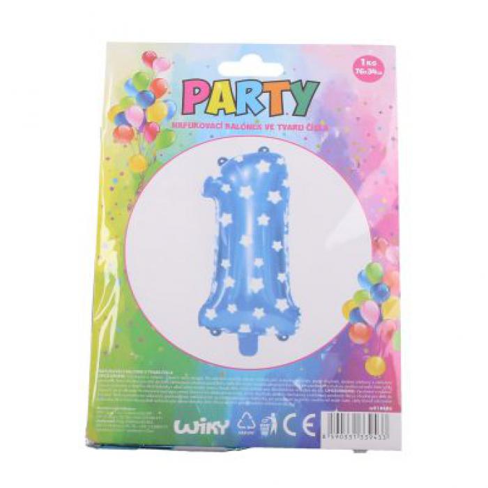 Nafukovací balónek ve tvaru čísla 1, balení obsahuje 1 ks, barva: modrá.