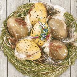 Velikonoční papírové ubrousky Pol-Mak z kolekce Brown Eggs in Nest, 20 ubrousků, třívrstvé, 33x33cm....
