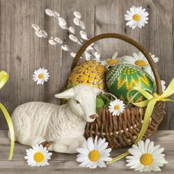 Velikonoční papírové ubrousky Pol-Mak Lamb & Easter Basket, 20 ubrousků, 33x33cm, třívrstvé.