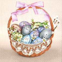 Velikonoční papírové ubrousky Pol-Mak Traditional Easter Basket with Lace, 20 ubrousků, 33x33cm, tří...