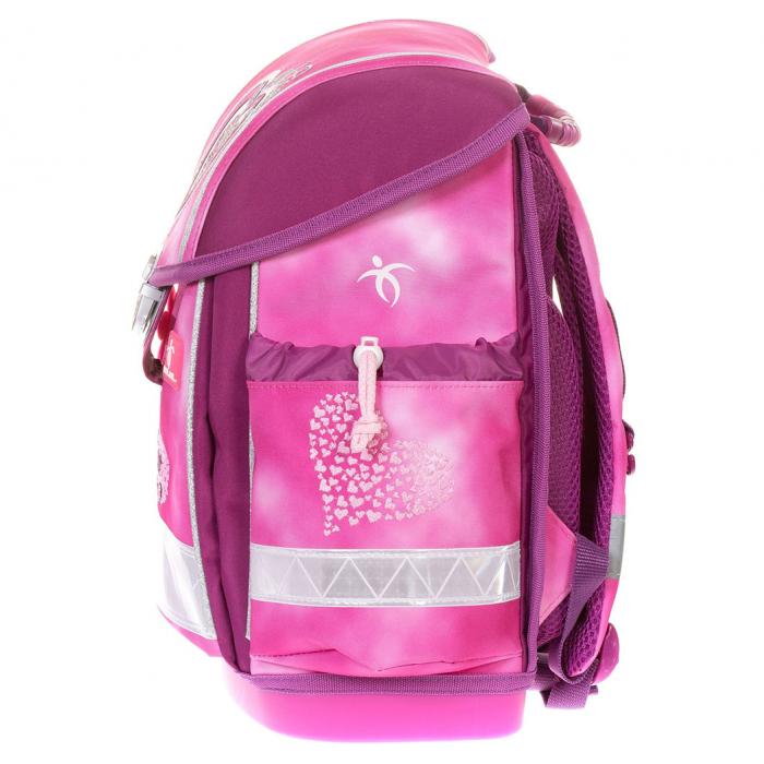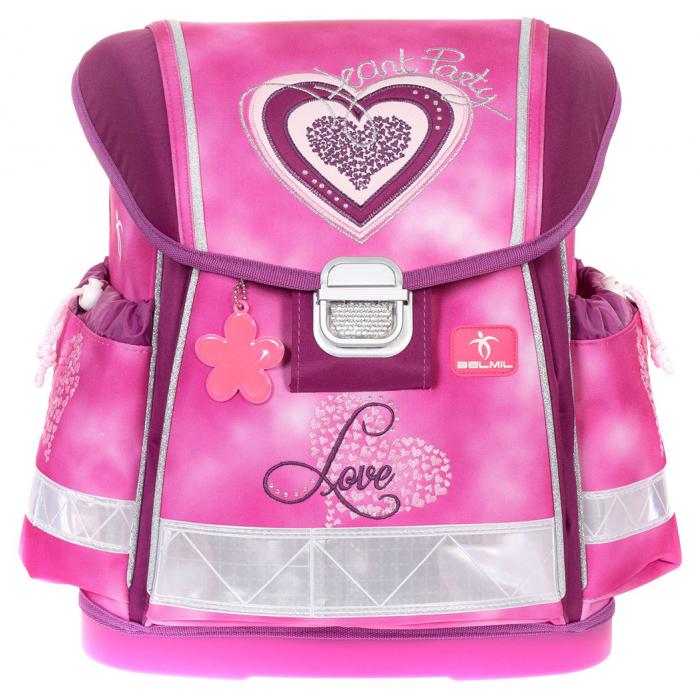 Lehký školní batoh (1000g) Love party s mnoha funkčními prvky. Vyroben z vysoce kvalitního, pevného a nepromokavého materiálu. Zesílená konstrukce a pevné dno pro lepší stabilitu. Ergonomicky tvarovaná polstrovaná záda a ramenní popruhy. Gumová rukojeť, poutko pro zavěšení. Spolehlivý a snadno použitelný kovový zámek. Reflexní prvky na všech stranách pro větší bezpečnost a viditelnost.