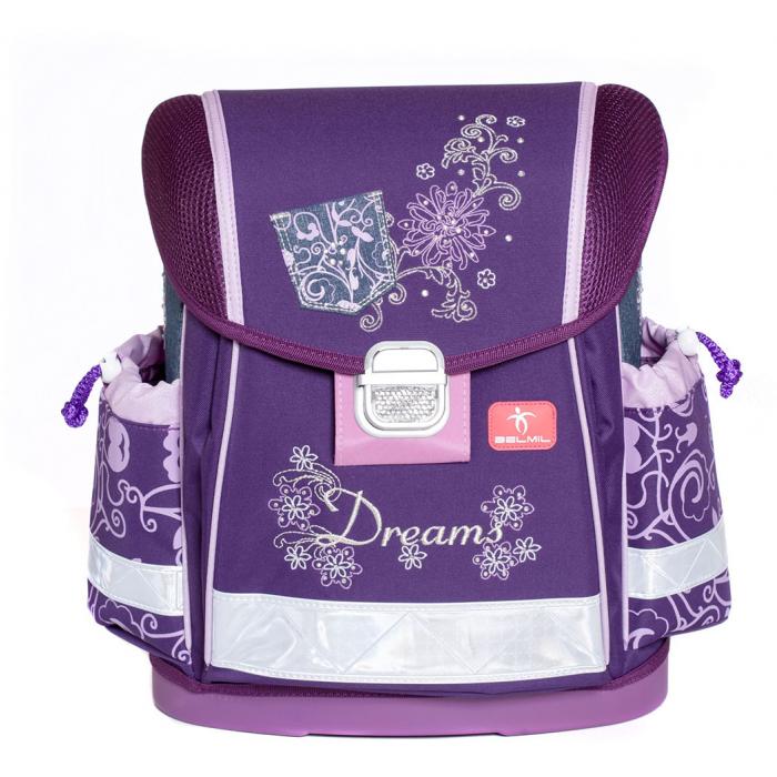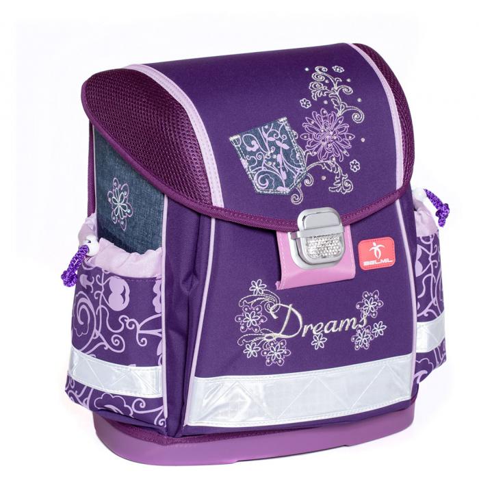 Lehký školní batoh (1000g) Purple Dreams 2 s mnoha funkčními prvky. Vyroben z vysoce kvalitního, pevného a nepromokavého materiálu. Zesílená konstrukce a pevné dno pro lepší stabilitu. Ergonomicky tvarovaná polstrovaná záda a ramenní popruhy. Gumová rukojeť, poutko pro zavěšení. Spolehlivý a snadno použitelný kovový zámek. Reflexní prvky na všech stranách pro větší bezpečnost a viditelnost.