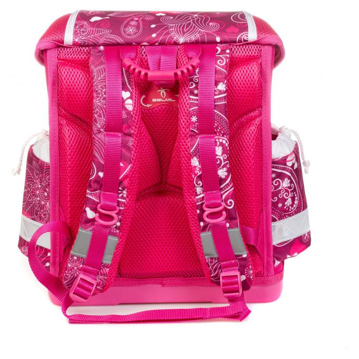 Lehký školní batoh (1000g) Joyful s mnoha funkčními prvky. Vyroben z vysoce kvalitního, pevného a nepromokavého materiálu. Zesílená konstrukce a pevné dno pro lepší stabilitu. Ergonomicky tvarovaná polstrovaná záda a ramenní popruhy. Gumová rukojeť, poutko pro zavěšení. Spolehlivý a snadno použitelný kovový zámek. Reflexní prvky na všech stranách pro větší bezpečnost a viditelnost.