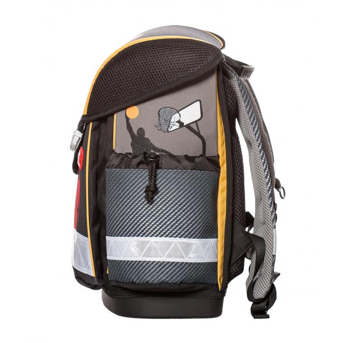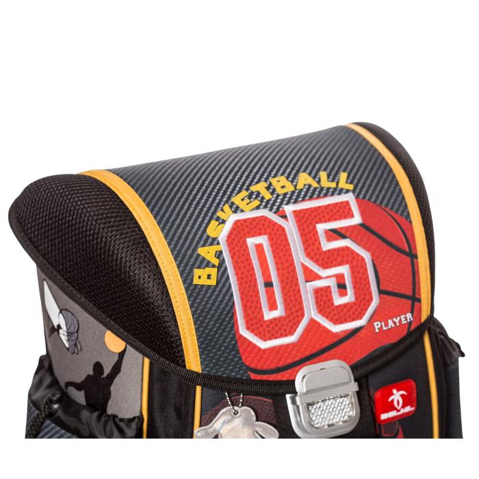 Lehký školní batoh (1000g) Basketball s mnoha funkčními prvky. Vyroben z vysoce kvalitního, pevného a nepromokavého materiálu. Zesílená konstrukce a pevné dno pro lepší stabilitu. Ergonomicky tvarovaná polstrovaná záda a ramenní popruhy. Gumová rukojeť, poutko pro zavěšení. Spolehlivý a snadno použitelný kovový zámek. Reflexní prvky na všech stranách pro větší bezpečnost a viditelnost.