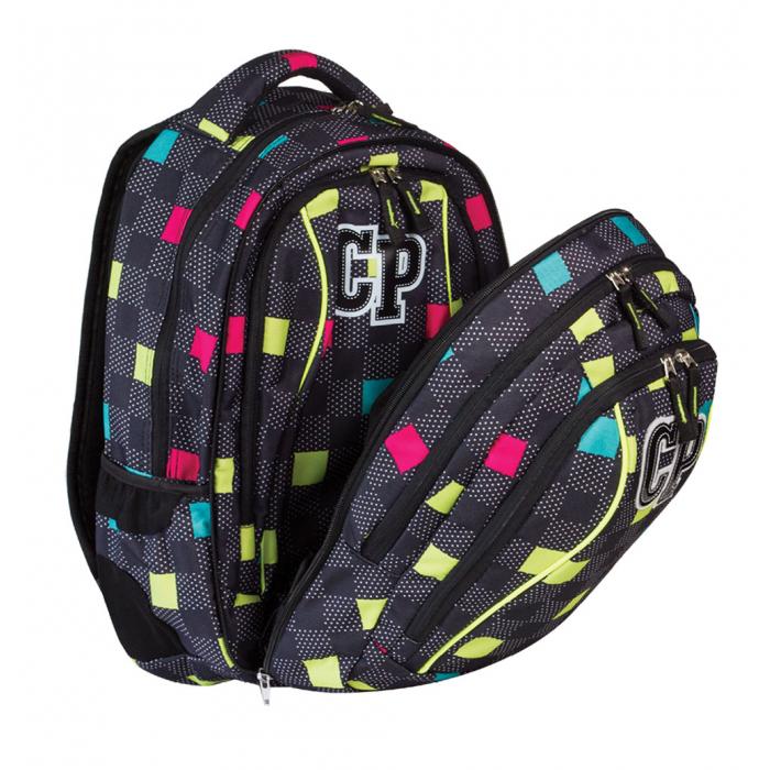 Batoh CoolPack Combo 472. Batoh se skládá ze dvou samostatných batohů, které jsou dohromady včleněny do jednoho velkého batohu. V závislosti na vašich potřebách, můžete použít kterýkoliv z nich pro různé příležitosti. Coolpack 2v1 batoh je ergonomicky navržen, vyroben z nepromokavé a prodyšné polyesterové tkaniny, odolný proti skvrnám a snadno se čistí. Dvě prostorná hlavní oddělení - vejde se hodně položek, jako jsou knihy, učebnice nebo notebook. Uživatelé jistě ocení také organizační kapsu, kde můžete bezpečně ukládat klíče, tužky, peněženku nebo jiné drobné předměty. Kromě toho, ve spodní části batoh má zesílené, polstrované opěradlo a široké, nastavitelné měkké popruhy s reflexními prvky.