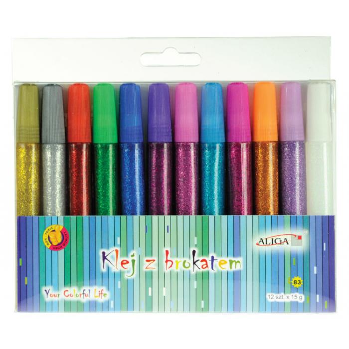 Brokátové lepidlo, balení obsahuje 12 barev.
