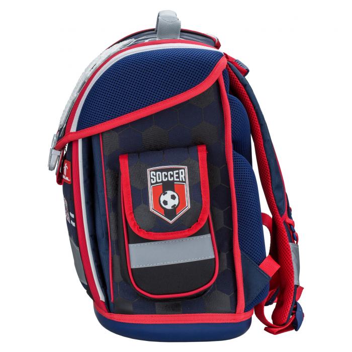Lehký školní batoh (1100g) Soccer Game s mnoha funkčními prvky. Vyroben z vysoce kvalitního, pevného a nepromokavého materiálu. Zesílená konstrukce a pevné dno pro lepší stabilitu.