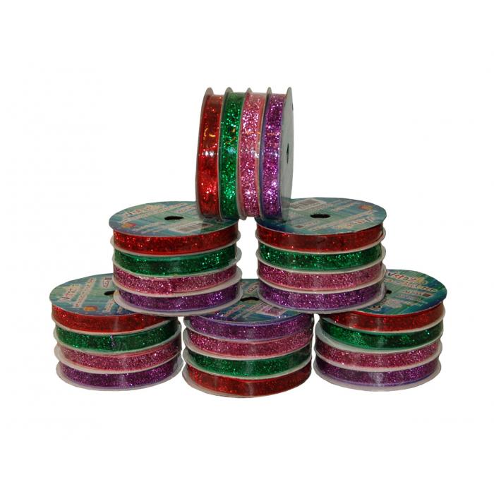 Brokátová stuha jednolící. 10mm x 2m. Balení obsahuje 4 barvy (červená, zelená, růžová, fialová)