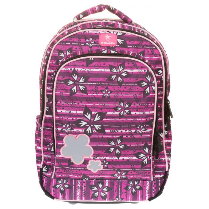 Lehký školní batoh (700g) Crazy Flower s mnoha funkčními prvky. Vyroben z vysoce kvalitního a nepromokavého materiálu. Ergonomicky tvarovaná polstrovaná záda a ramenní popruhy. Polstrovaná rukojeť. Reflexní prvky.