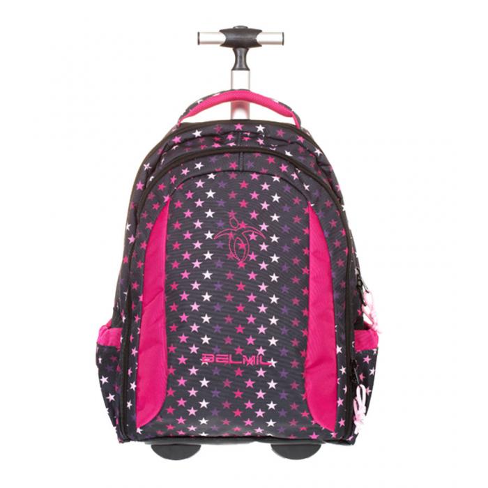 Školní batoh s kolečky (1900g) Stars s mnoha funkčními prvky. Teleskopická rukojeť. Vyroben z vysoce kvalitního, pevného a nepromokavého materiálu. Zesílená konstrukce. Polstrované ramenní popruhy. Polstrovaná rukojeť. Reflexní prvky.