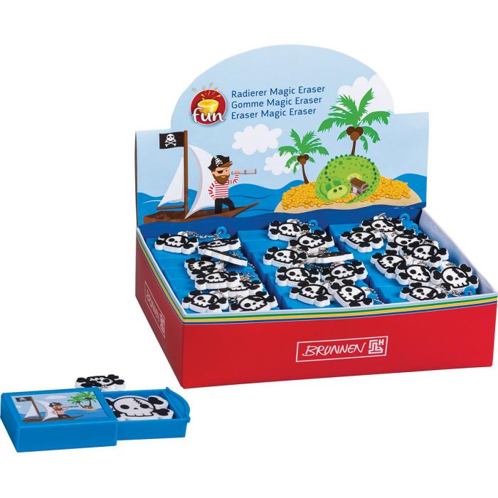 Pryž - Pirát v kouzelné krabičce kat.č:22678EAN:4003273622678Skladem:NEmin.odběr:1 bal po 24 ksVelikost: Výrobce:Dekor Art Pryž ve tvaru piráta v kouzelné krabičce. Balení obsahuje 24ks.
