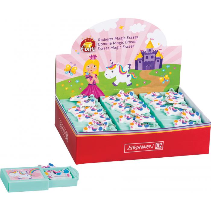 Pryž ve tvaru jednorožce v kouzelné krabičce. Balení obsahuje 24ks.