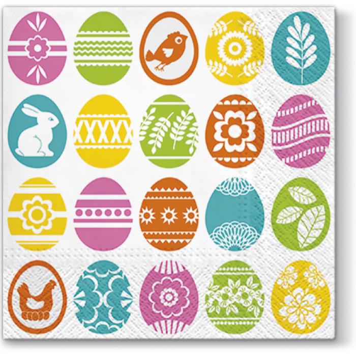 Velikonoční papírové ubrousky Paw TeTe z kolekce Spring Eggs, 20 ubrousků, třívrství, 33x33cm....