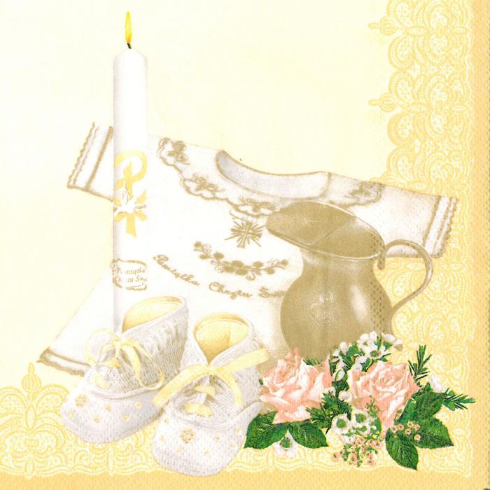 Papírové ubrousky Pol-Mak: Christening Composition, krémové, 20 ubrousků, třívrstvé, 33x33cm.