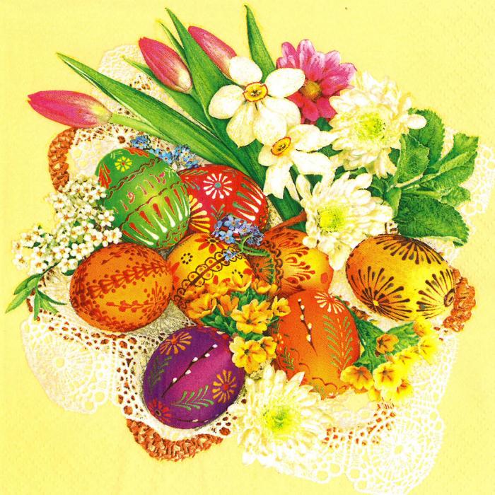 Velikonoční papírové ubrousky Pol-Mak Daisy z kolekce Easter Composition, 33 x 33 cm, třívrstvé.