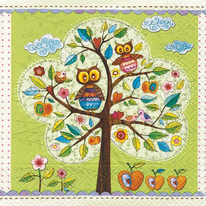Papírový ubrousek Owl tree kat.č:G-21344EAN:0Skladem:NEmin.odběr:1 bal po 20 ksVelikost:Lunch Výrobce:Gomar Papírové ubrousky Gomar v provedení Owl tree.20 ubrousků, třívrstvé, 33x33cm.