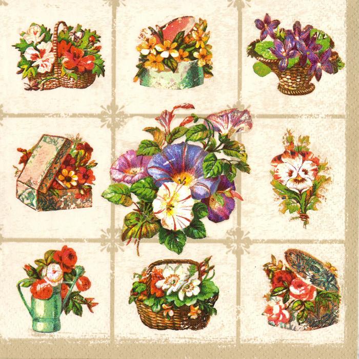 Papírové ubrousky Pol-Mak Daisy: Chessboard with Garden Flowers, 20 ubrousků, třívrstvé, 33x33cm.