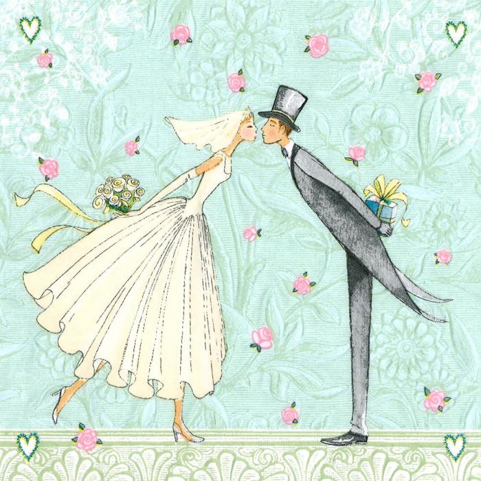 Papírové ubrousky Paper-Design v provedení Moments Bride and groom. 16 ubrousků, třívrstvé, vytlačované, 33x33cm.