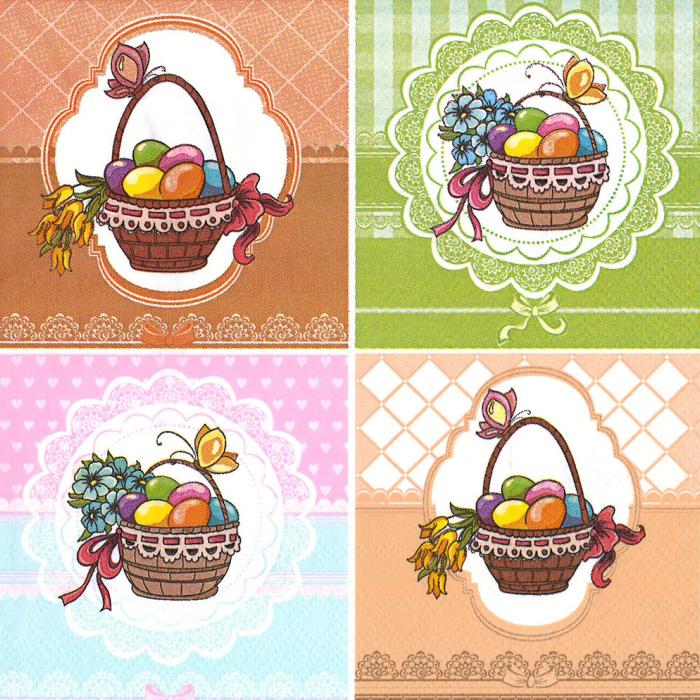 Velikonoční papírové ubrousky Pol-Mak Daisy z kolekce Four Easter Baskets, 33 x 33 cm, třívrstvé.