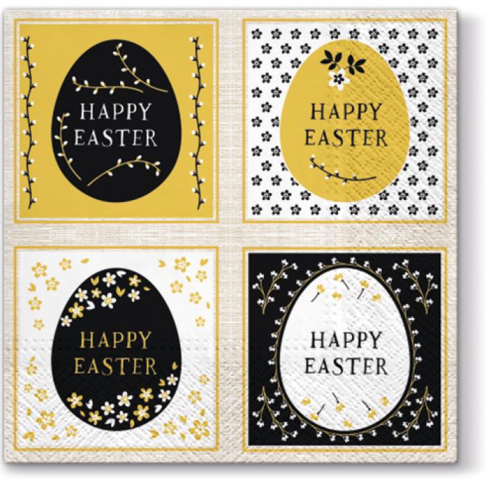 Velikonoční papírové ubrousky Paw z kolekce Modern Eggs, 20 ubrousků, třívrstvé, 33x33cm.