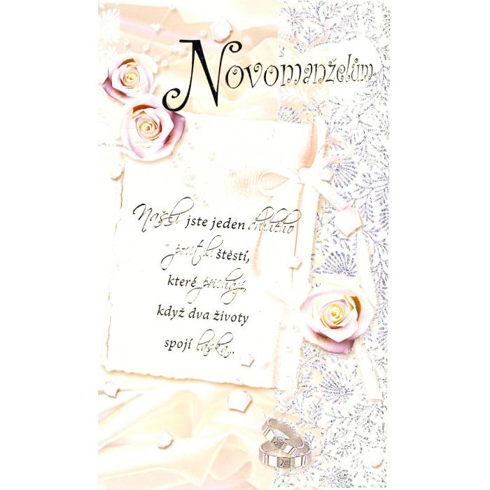 Svatební přání Mezuza 02-148 s textem kat.č:02-148 NEAN:0Skladem:NEmin.odběr:1 bal po 10 ksVelikost:19 x 11,5 cm Výrobce:Mezuza Svatební přání 19 x 11,5 cm, ražba, text uvnitř.
