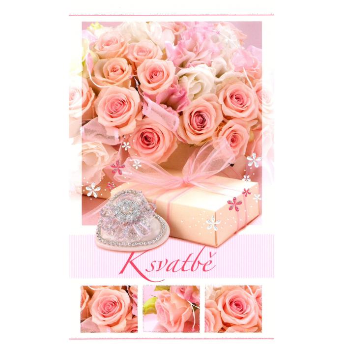 Svatební přání 19 x 11,5 cm, ražba, text uvnitř.