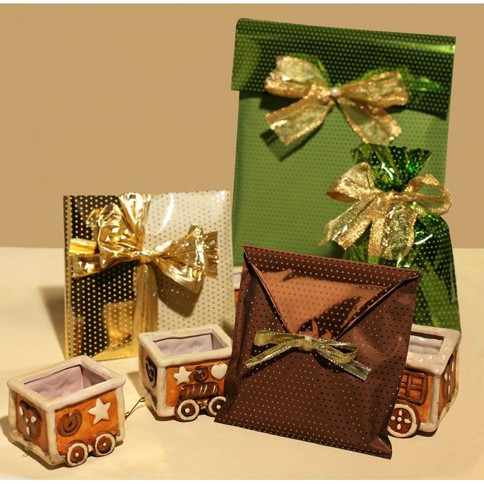 Sáček 16 x 25 cm Dots Double Metal mix EAN:0Skladem:NEmin.odběr:1 bal po 100 ksVelikost:16 x 25 cm Výrobce:PNP Mix sáčku Dots Double Metal v barvách stříbrná, zlatá, modrá, červená, hnědá.