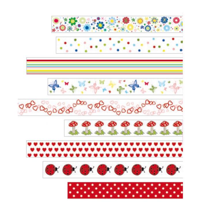 Samolepící páska se vzorem kat.č:84395EAN:0Skladem:NEmin.odběr:1 ksVelikost:15mm x 10m Výrobce:Heyda Samolepící páska se vzorem. 9 vzorů.Celé balení obsahuje 36 ks.