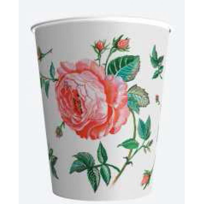 Papírový kelímek 0,25l s romantickým dekorem vhodný na teplé i studené nápoje. Ideální na zahradní slavnost, piknik či svatbu. V balení 8 ks.