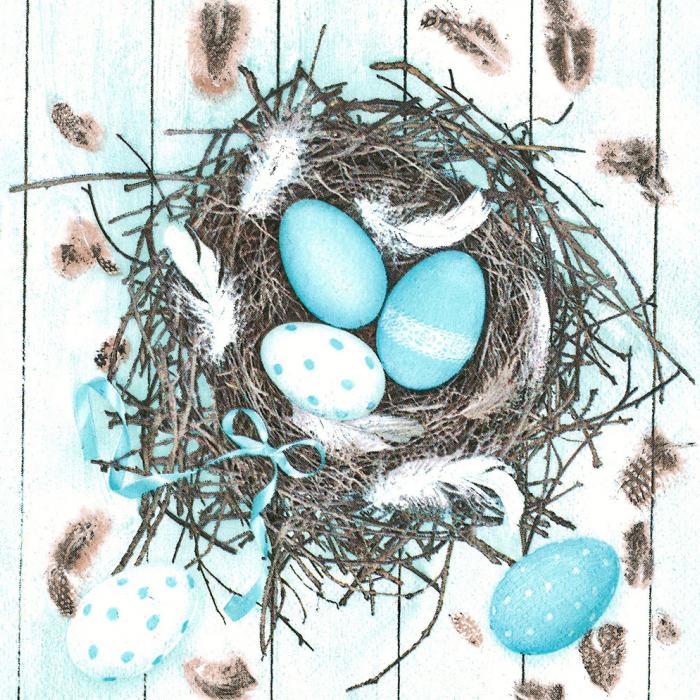 Velikonoční ubrousek Pastel Blue Eggs in Natural Nest