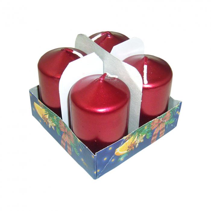 Svíčky malý válec - vínová metal kat.č:74900EAN:8594017674900Skladem:NEmin.odběr:1 bal po 4 ksVelikost:4 x 6 cm Výrobce:Krab Sada adventních svíček - válec.Barva: vínová metal.