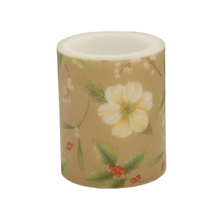 Svíčka s motivem ubrousku Lightness gold vytvářející po zapálení dojem lampionu.